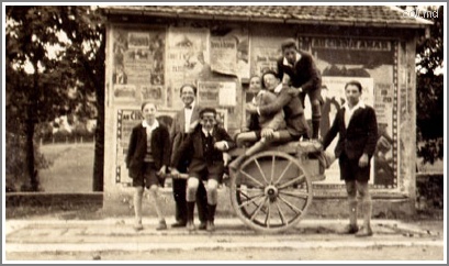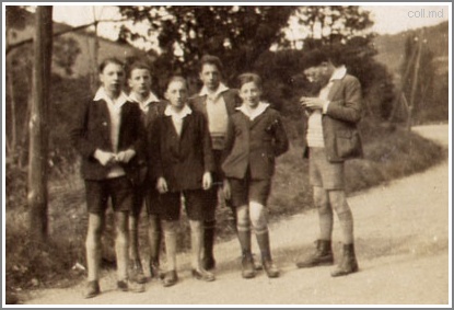 | J'ai trouvé un album dans les affaires de mon père après sa mort. Une cinquantaine de photographies prises vers 1930 au collège Notre dame de Mongré, à Villefranche-sur-Saone. On y reçut d'illustres élèves comme Saint-Exupéry ou le père Teilhard de Chardin. Les vieilles familles de Lyon y avaient leurs habitudes..Homère chantait que les générations d'hommes se suivent comme les générations de feuilles. Si ce n'était pas le cas, qu'auraient-elles à se dire ?... J'ai trouvé dans cet album les signes d'un passé antérieur .... Quelques rares souvenirs personnels m'avaient été contés. Nous sommes à moins de dix ans de la deuxième guerre mondiale . Il est émouvant de voir que l'Histoire travaillait ici, se moquant du monde et de la jeunesse vers 1930.Ce ne sont pas des images d'une qualité exceptionnelle sur le plan technique. Les épreuves étaient de très petit format (3-4 cm), parfois jaunies, souvent floues. j'ai essayé autant que possible d'y remettre du naturel. Les négatifs sont perdus. Mon père avait noté beaucoup de noms. Ces photos ne sont donc presque jamais anonymes : ce passé est un peu plus net. | ||
