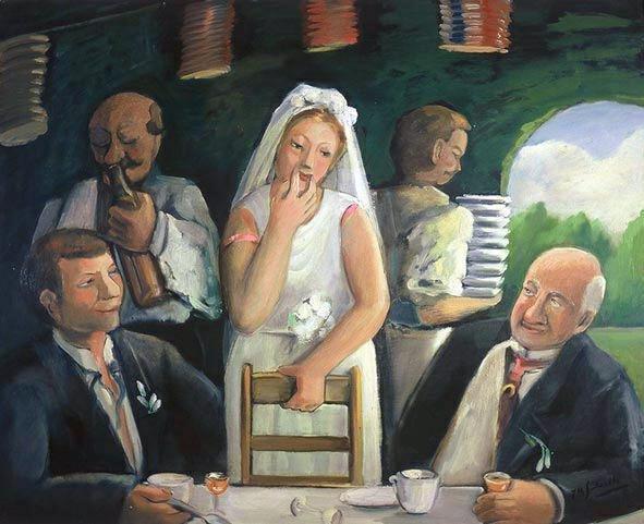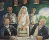 .On sentait qu'une passion particulière habitait le personnage, que sa vie ne l'avait pas lassé. Nous avions échangé quelques mots à l'occasion de sa dernière exposition de 1978 à Bernay. Quelques semaines après je quittais la normandie. Je ne l'ai jamais revu..Dans nos bagages nous emportions "La chanson de la mariée". En 1980 j'exposais chez Lionel Cavalero, rue d'Antibes à Cannes. Les Cavalero dormaient sous un Picabia, la deuxième version d'UDNI, et au milieu d'une trentaine de Poliakov et de Bryen. J'ai vu chez eux une des plus belles collections d'abstraits lyriques de France. Ceux des années 50 à 80, non pas les ouvrages de dames ou les vapeurs subjectives des Bobos des années 2000. Nous passions de longs moments à parler de peintres et de peinture. J'étais jeune. La première fois qu'ils sont venus chez moi, ils ont eu un mot pour le tableau de Salnelle:" C'est bon ça !!..." et nous avons parlé de cette toile.J'ai fait quelques recherches sur jean-Marie Salnelle. Bernard Méaulle avait accepté de passer un article mensuel sur un tableau pendant un an, pleine page couleur. L'an 2000 a donc été dans l'Eveil Normand l'année du peintre de Bernay. Je remercie tout particulièrement Denise Soler pour l'ensemble des documents qu'elle m'a communiqués et les multiples entretiens qui m'ont permis de mieux connaître son père. MD. |