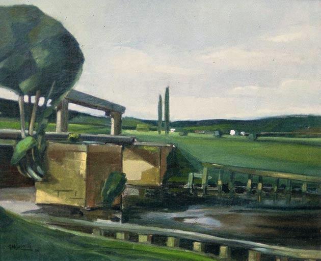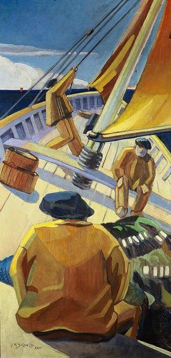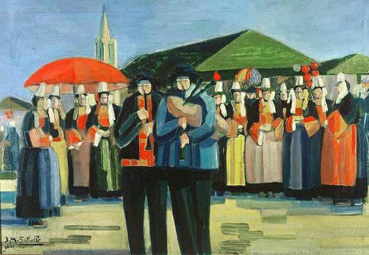 | ........ Il naît le 8 avril 1894. Son père, le docteur Clovis Salnelle, est originaire de la Neuve-Lyre. Ancien externe des hopitaux parisiens, il s'installe à Bernay en 1880. Il épouse en 1885 une demoiselle Blondel, fille d'un éleveur de chevaux à Capelles-les-Grands. Le docteur est un homme cultivé, bibliophile et licencié es lettres. On ne s'ennuie pas au 16 de la rue des Charrettes, la gaieté est de rigueur dans les réunions de familles. Lottin de Laval y avait ses entrées, on pouvait y voir son portrait par Thomas Couture. Ce milieu provincial est ouvert, sensible aux évolutions rapides de la fin du siècle. Les Salnelle sont catholiques et républicains, le docteur est aussi un médecin des pauvres. Le jeune Jean-Marie pratique tous les sports: athlétisme, lutte, courses cyclistes, natation, escrime, patinage, tennis, tir à la carabine, équitation...Il fait un numéro pendant quelques temps dans un cirque et s'envole sur de grands cerf-volants...Cette dépense physique s'accompagne d'une certaine réserve pour les exercices scolaires et Salnelle, très occupé à faire de ses professeurs des héros de bandes dessinées, ne réussit pas le baccalauréat. Il entre aux Beaux-Arts de Rouen en octobre 1912, remporte l'année suivante le prix de Peinture et le premier prix de Composition en Arts Décoratifs. Il est reçu en 1913 aux Arts Déco de Paris. Mais les examens de juillet 1914 passent à la trappe, question d'actualité...Le cuirassier Salnelle participe aux batailles de la Somme et de l'Artois, essuie une des premières attaques au gaz. Pourri de rhumatismes il patauge dans des tranchées inondées, comme ses camarades qui, sans pantalon, ramènent le flanquet arrière de leur chemise par devant et le fixent avec des épingles à nourrice. Ils organisent la dégringolade d'un caillebotis lors d'une inspection. Le général se venge en expédiant le cuirassier dans une équipe de "nettoyeurs" de tranchées en compagnie de repris de justice et autres spécialistes des armes blanches. Le jeune bourgeois s'en tire mais en désespoir de cause demande à passer dans l'aviation. on l'accepte. il effectue 32 missions en deux mois de 1917, est abattu trois fois dans des combats à un contre cinq, se tire trois fois de son "moineau" en flammes après des descentes en vrille de la dernière chance, sauve trois fois son équipage des carcasses en train de brûler. Il se marie en 1919 de retour à la vie civile..Il expose des paysages, des natures-mortes, des scènes de Bretagne et de Normandie à Caen, à Rouen, puis à Paris à partir de 1925. Salon des Indépendants, salon de l'Ecole Française, salon du Touring-Club de France, Salon d'Automne etc... "C'est un artiste extrêmement personnel qu'il faut ranger parmi les meilleurs de sa génération." publie la Revue du Vrai et du Beau (1925). Salnelle est reconnu par ses pairs. Mais à Paris tout a changé. La province était entrée comme jamais dans la peinture au moment de l'Impressionisme parce qu'elle servait d'instrument aux bouleversements du regard. Les dindons blancs ou la Sainte-Victoire furent d'abord les outils d'une autre lumière et d'une autre plastique, comme la bretagne de Gauguin ou la campagne d'Arles chez Van Gogh.